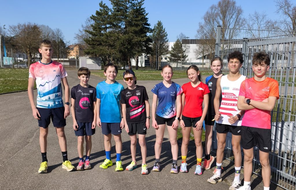 Le stage Ligue organisé en février à Mulhouse était avant tout un stage orienté natation, avec deux entraînements dans l’eau chaque jour pour l’ensemble des jeunes présents. Sur cinq jours et demi de stage, les athlètes auront cumulé 23 heures d’entraînement, dont une large majorité consacrée au travail en piscine. Les triathlètes minimes ont réalisé un total de 39 km de natation, tandis que les athlètes benjamins ont parcouru 37 km, représentant près de 17 heures de travail dans l’eau sur la semaine. Le programme était complété par de la course à pied (environ 37 km pour les plus grands et 31 km pour les autres) ainsi que 2 heures de préparation physique générale, permettant de varier les sollicitations tout au long du stage. En parallèle des entraînements, les jeunes ont également bénéficié d’analyses vidéo individuelles et de temps d’échanges en soirée, afin d’approfondir leur compréhension technique et leur progression. Une semaine dense et très formatrice, placée sous le signe du travail, du partage et de la progression collective.