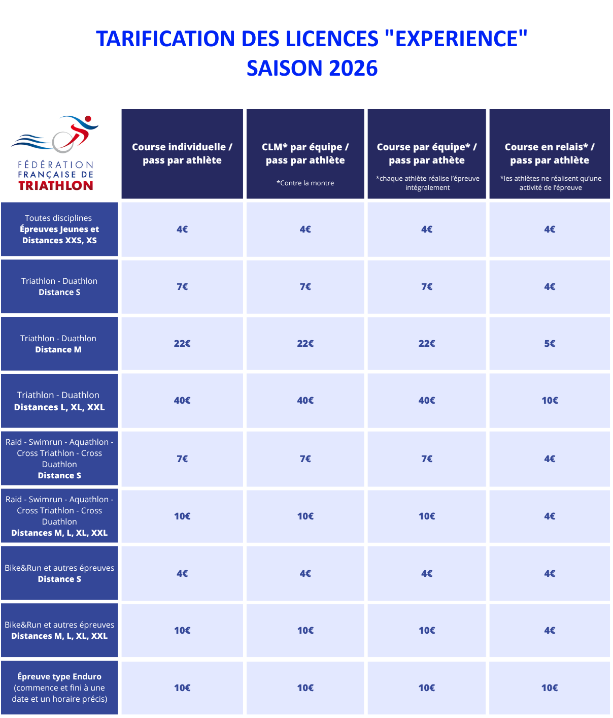 - être agréé engage l’organisateur à suivre la réglementation sportive, faire souscrire des Pass Compétition en ligne pour les non licenciés, régler à la Ligue la Cotisation Participant (coûts Ligue 2026 – Coûts-FFTRI-2026 – Tarifs Licence Expérience 2026)